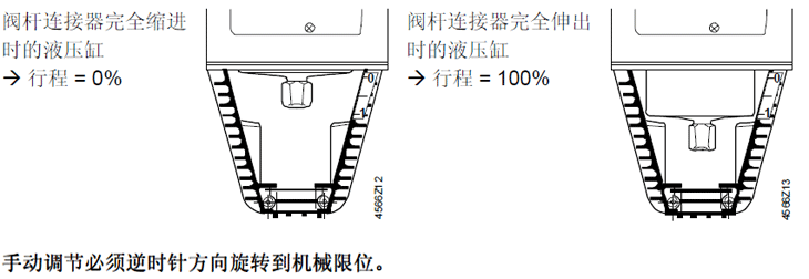 閥桿連接器完全縮進(jìn)時(shí)的液壓缸行程 = 0%