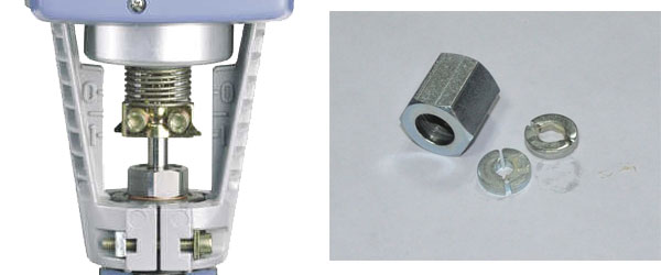 (3)閥桿頂部半月卡環(huán)與SKB..SKC..執(zhí)行器連接只用1個(gè);另一個(gè)不可放置于閥桿頂部,否則相當(dāng)于閥桿加長(zhǎng),導(dǎo)致關(guān)閉不嚴(yán)。